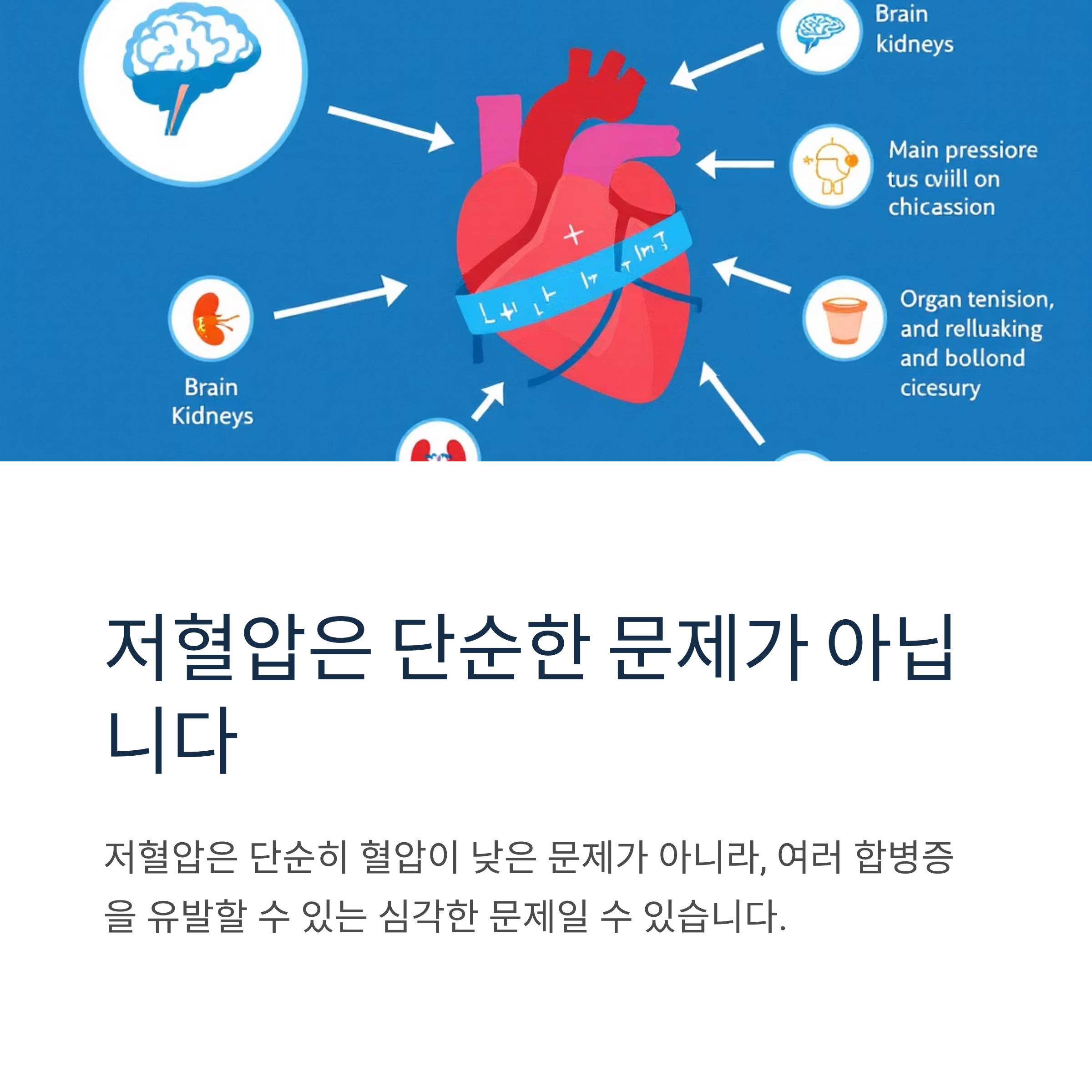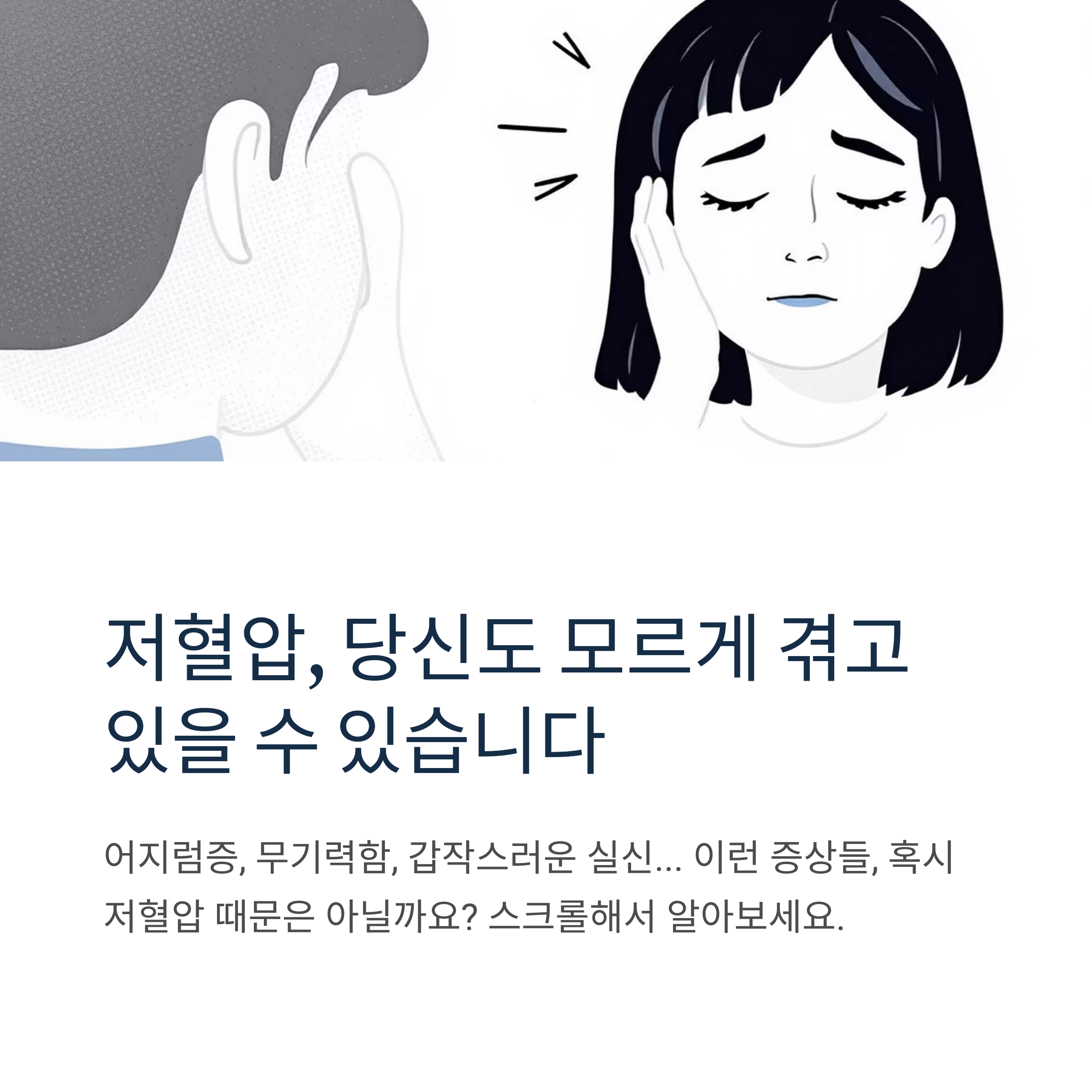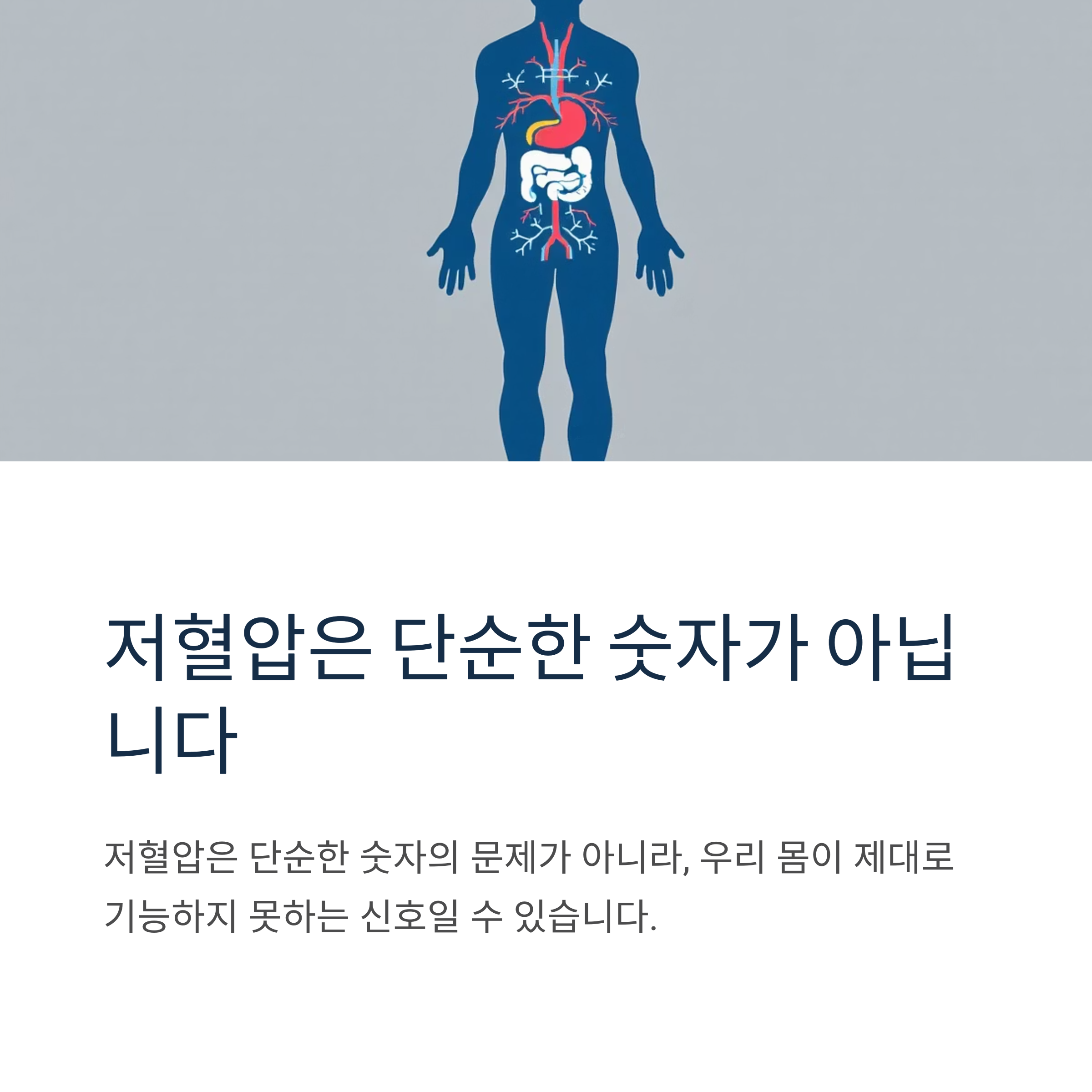 하지만 혈압이 낮아서 몸에 필요한 혈액 공급이 원활하지 않으면 어지럼증이나 두통, 심하면 실신까지 이어질 수 있으니 주의해야 합니다. 저혈압은 단순한 숫자의 문제가 아니라, 우리 몸이 제대로 기능하지 못하는 신호일 수 있다는 걸 기억해주세요.