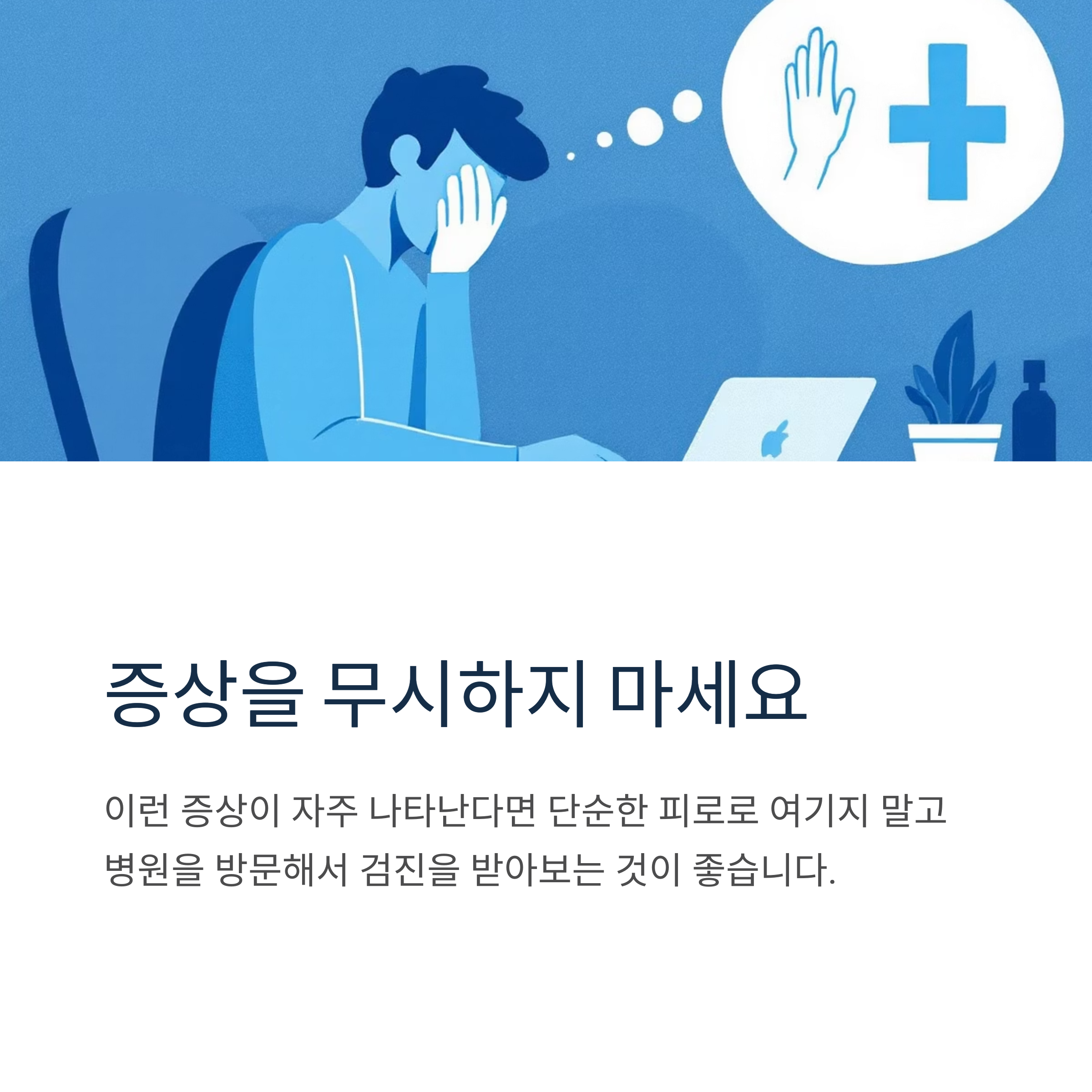 심한 경우에는 실신까지 할 수도 있답니다. 이런 증상이 자주 나타난다면 단순한 피로로 여기지 말고 병원을 방문해서 검진을 받아보는 것이 좋아요. 몸이 보내는 신호를 무시하지 말고, 건강을 챙기는 데 소홀하지 말아야겠죠? 조기에 진단받고 관리하면 더 큰 문제를 예방할 수 있다는 점을 잊지 마세요.