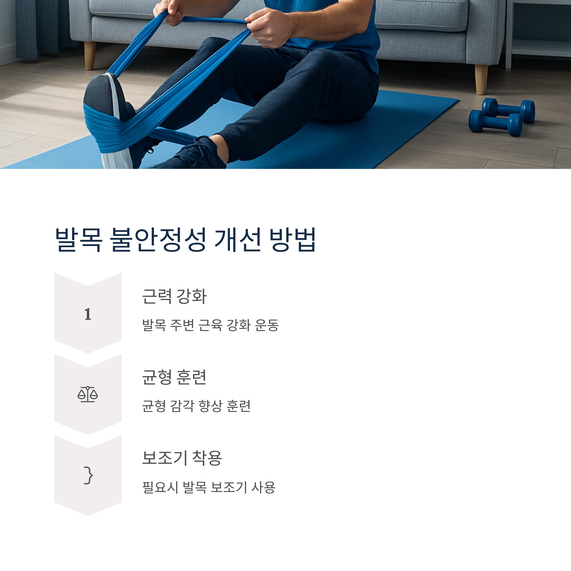 발목을 한 번 삐끗한 후 제대로 치료받지 않거나, 반복적으로 발목을 삐는 경우 발목의 안정성이 떨어져 만성적인 통증으로 이어질 수 있습니다. 이런 발목 불안정성은 작은 충격에도 쉽게 삐거나 통증을 느끼게 만드는 원인이 됩니다. 발목을 지탱하는 인대나 근육의 약화가 주요 원인이죠.