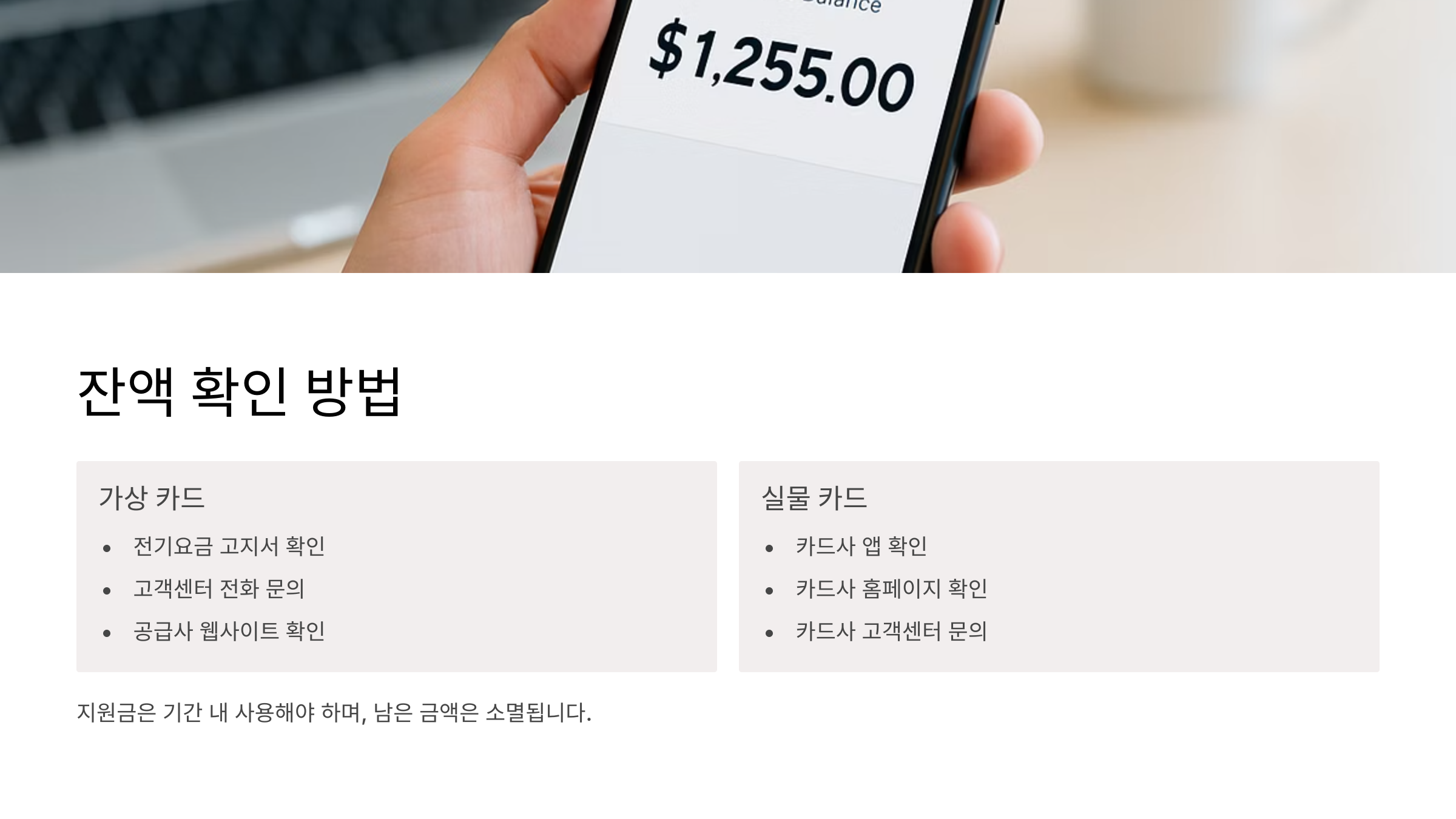 지원금은 기간 내에 사용해야 하고, 남은 금액은 소멸됩니다. 가상 카드는 전기요금 고지서나 관련 고객센터를 통해 확인할 수 있고, 실물 카드는 카드사 앱이나 홈페이지를 통해 확인 가능합니다. 2025년 에너지 지원사업에는 몇 가지 변화가 있습니다.