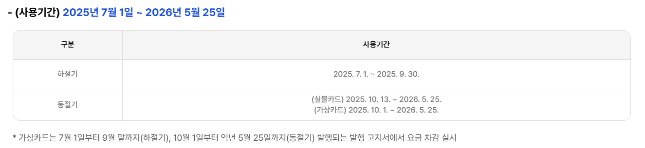 가상 카드는 전기요금이나 도시가스 요금에서 자동으로 차감되는 방식입니다. 실물 카드는 일반 카드처럼 사용할 수 있지만, 사용처가 제한될 수 있으니 어떤 카드를 선택할지 신중하게 결정해야 합니다.