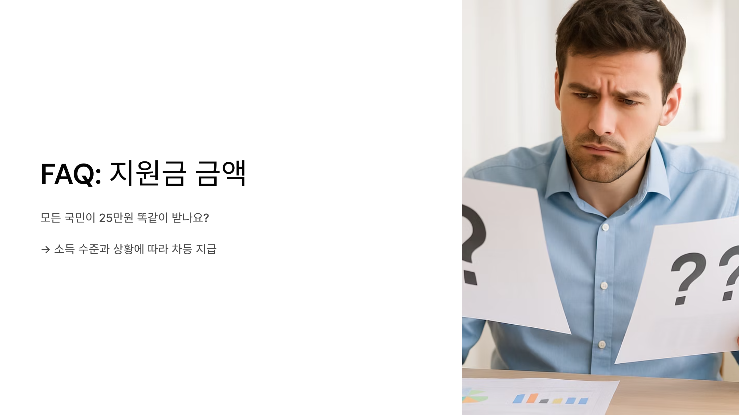 아직도 궁금한 점이 남아있나요? 많은 분들이 지원금에 대해 궁금해하시는 질문들을 미리 모아봤습니다. 예를 들어, 모든 국민이 25만 원을 똑같이 받는 것은 아니고, 소득 수준이나 여러 상황에 따라 다를 수 있습니다.